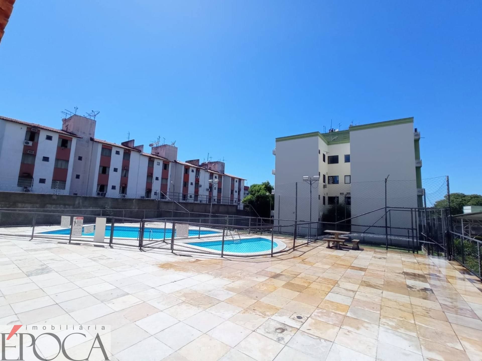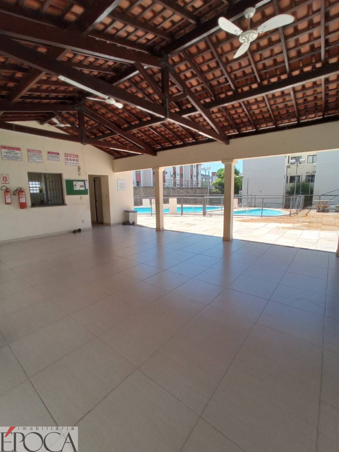 O condomínio conta com portão eletrônico com vigia 24 horas e área de lazer com piscina, churrasqueira, salão de festas e quadra de esportes.